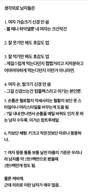 특히 2,3번.. 조금 더 끼운다면 성격, 종교, 정치관도 꽤나 살피는 편이다.