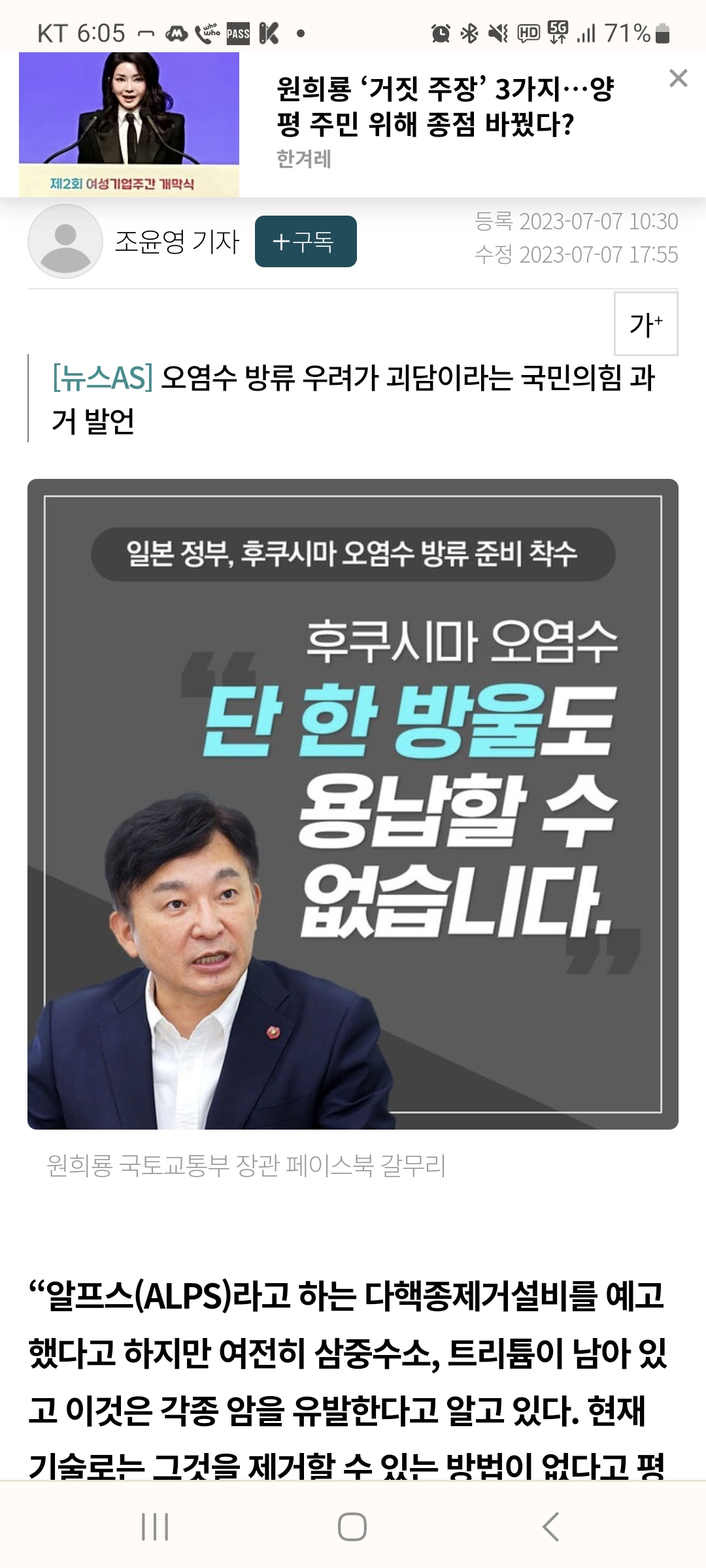 전 정권 시 김기현이 일본 원자력 오염수 방류에 대한 의견을 강하게 피력했었다.